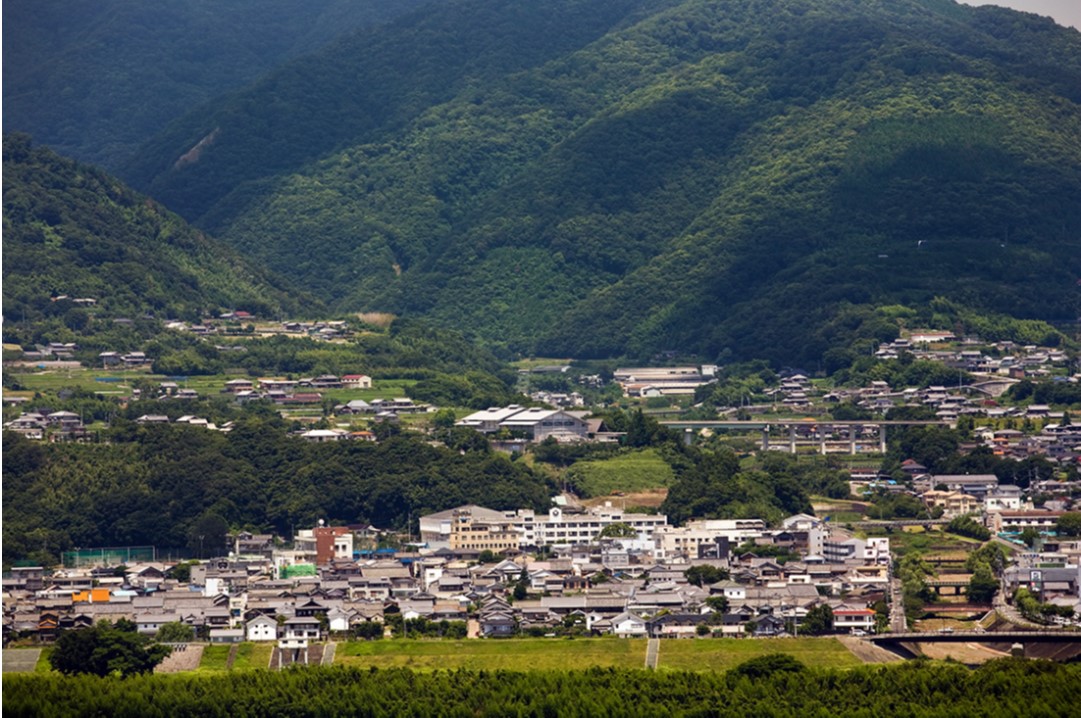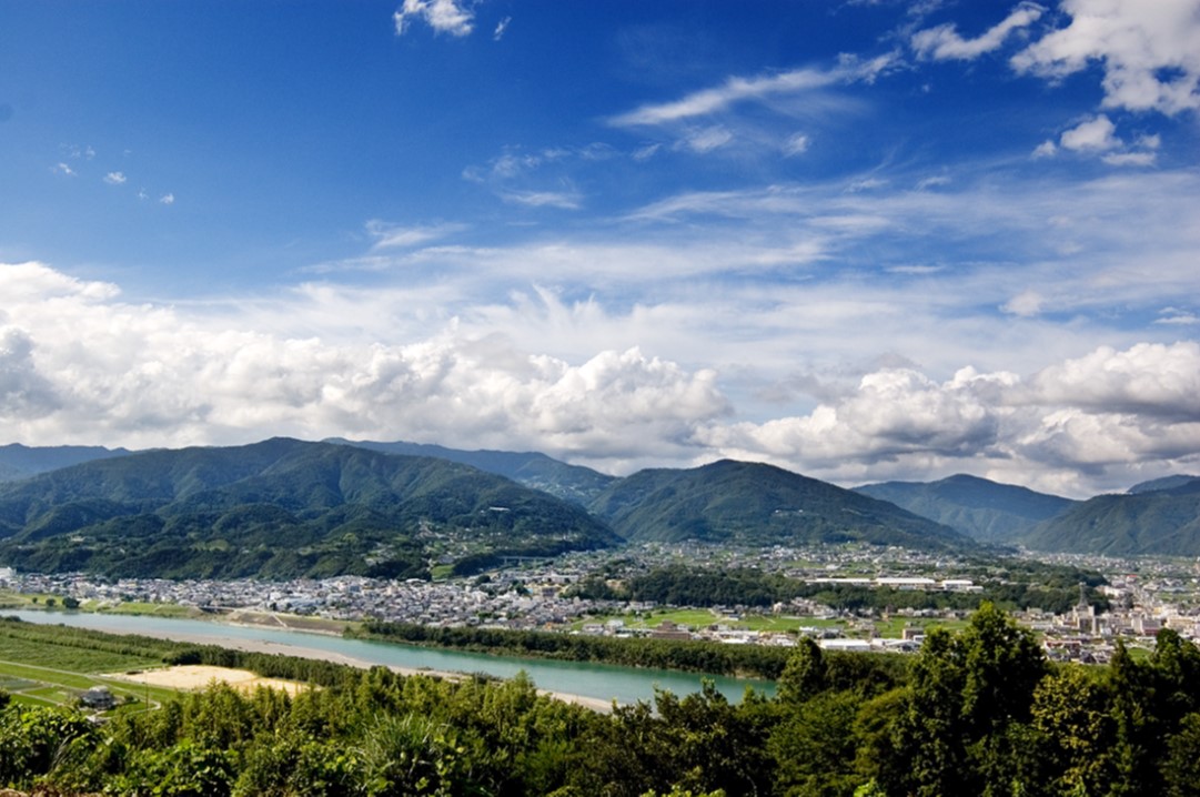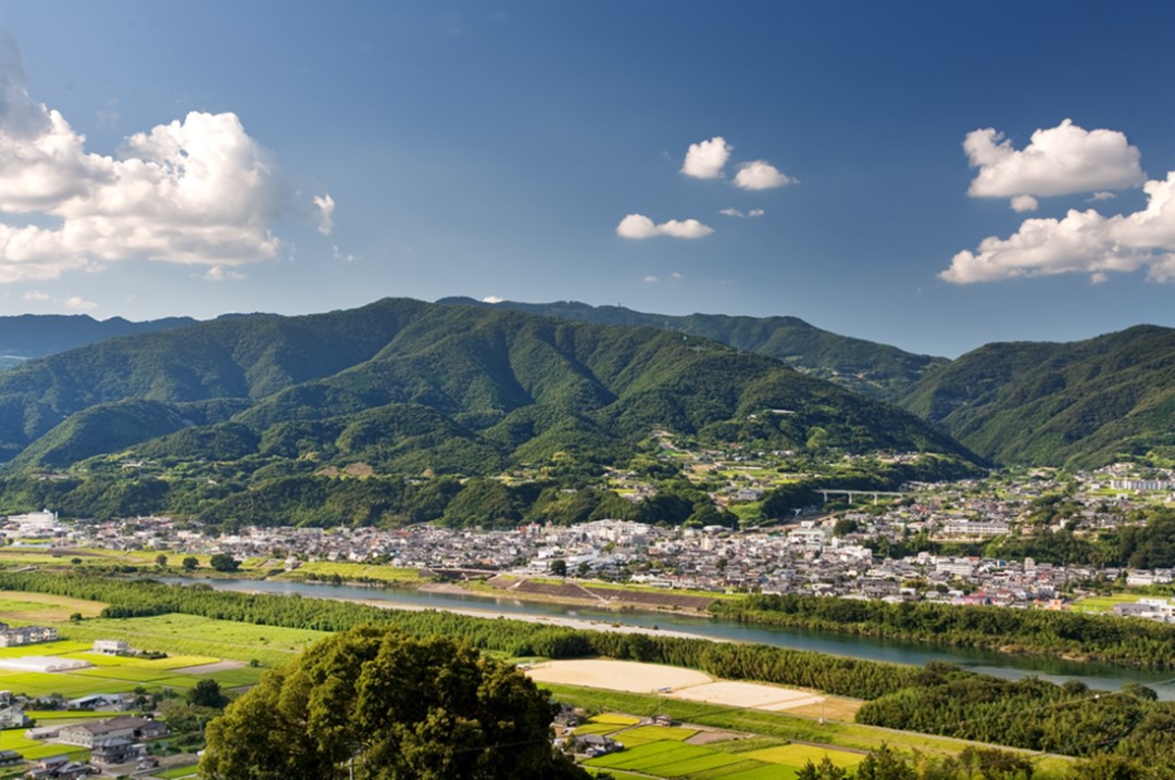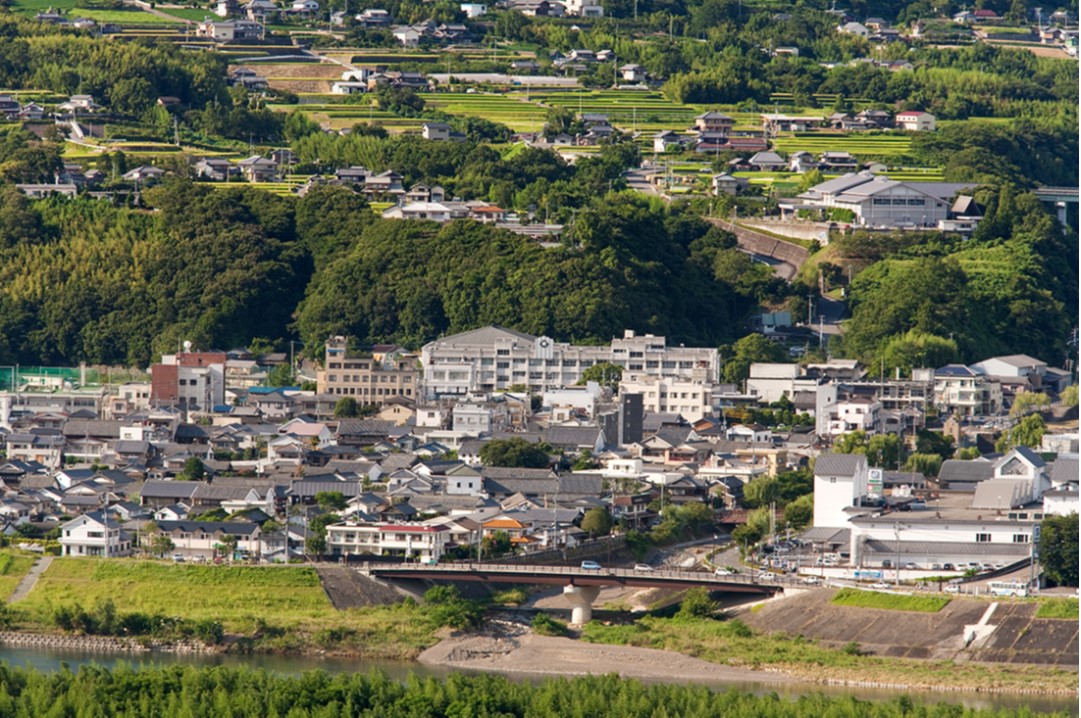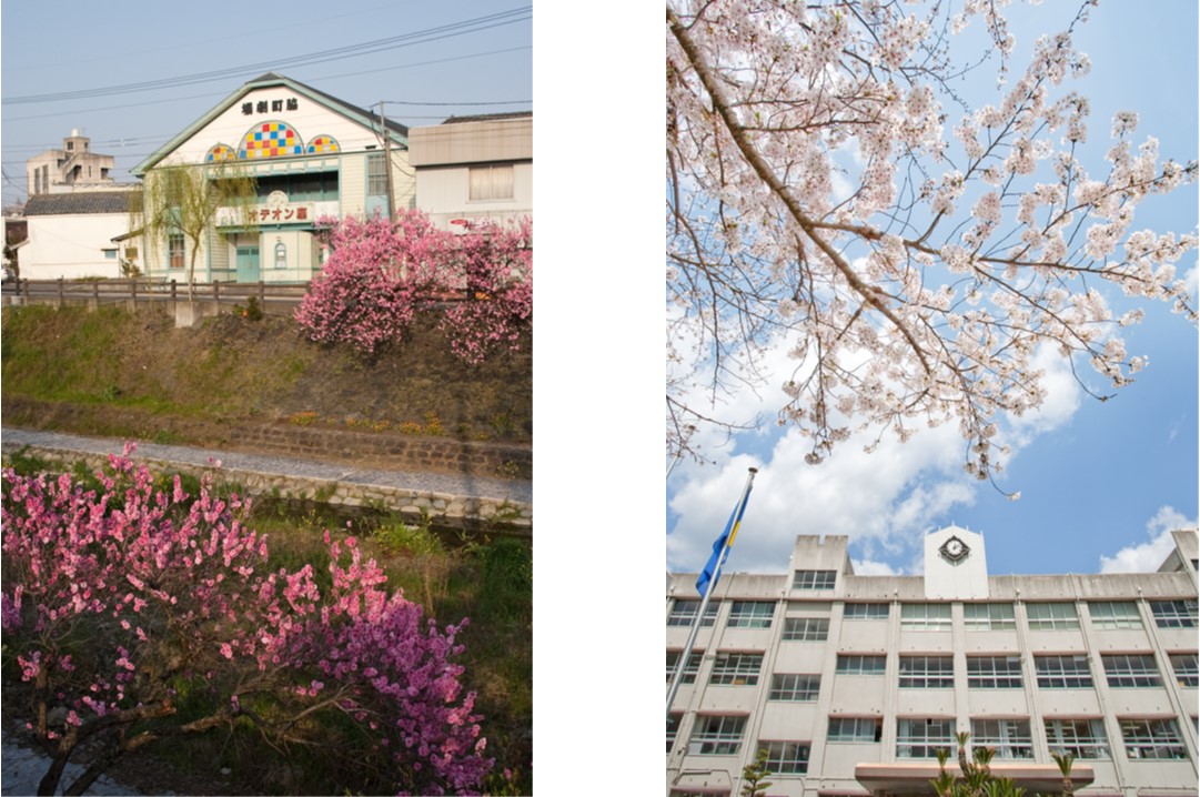 脇町高校と脇町の風景