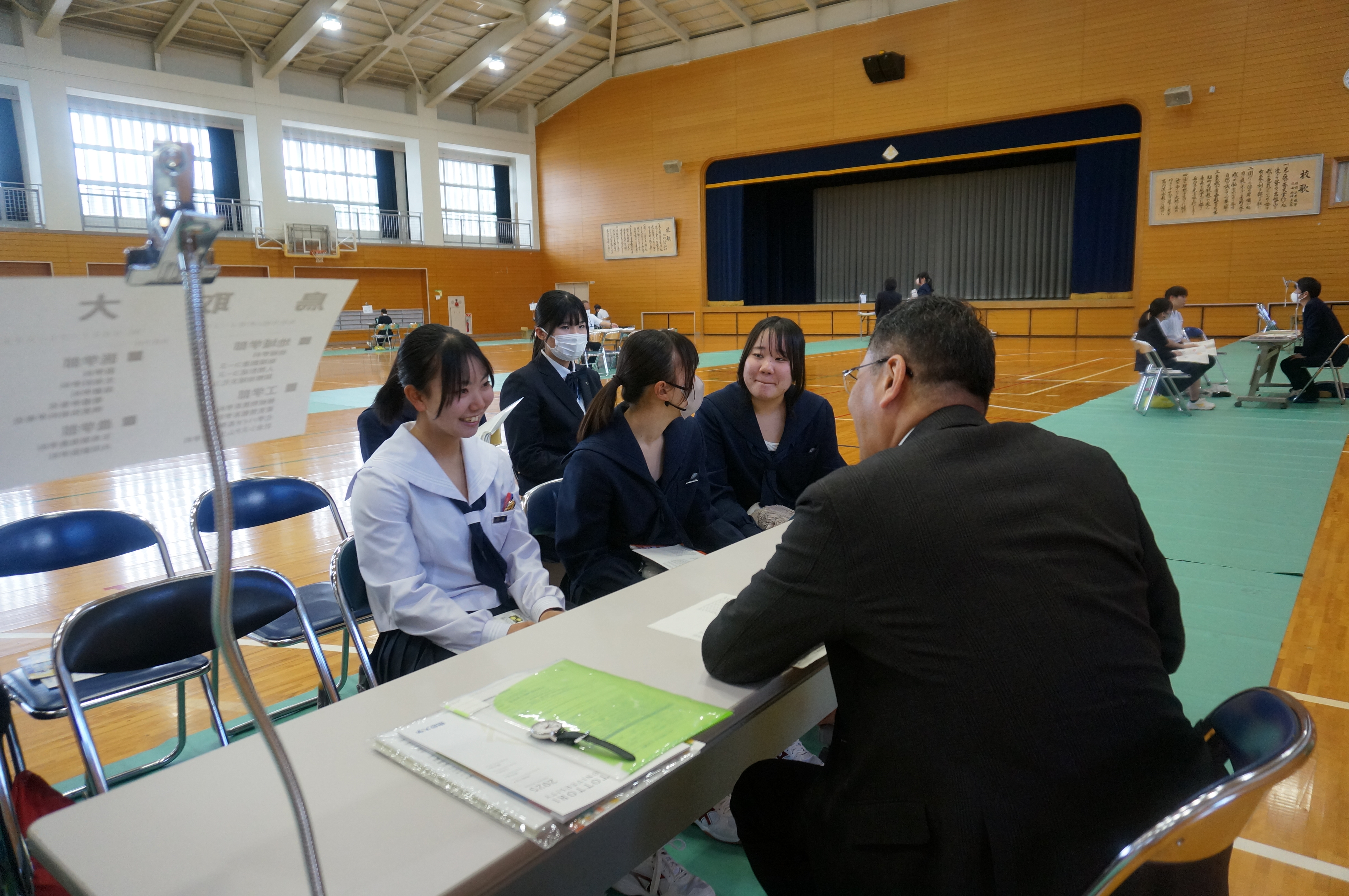 5月2日(金)に全学年対象の進学説明会を実施しました。1年生は分野別、2年生は分野別と大学別、3年生は大学別の説明会をそれぞれ4つ選択し、各会場に分かれて参加しました。合計50近くの国公立大学や私立大学等による対面もしくはオンラインでの説明会に生徒は熱心に耳を傾けていました。