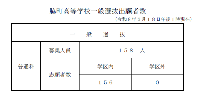令和8年度一般選抜出願者数(令和8年2月18日午後1時現在)