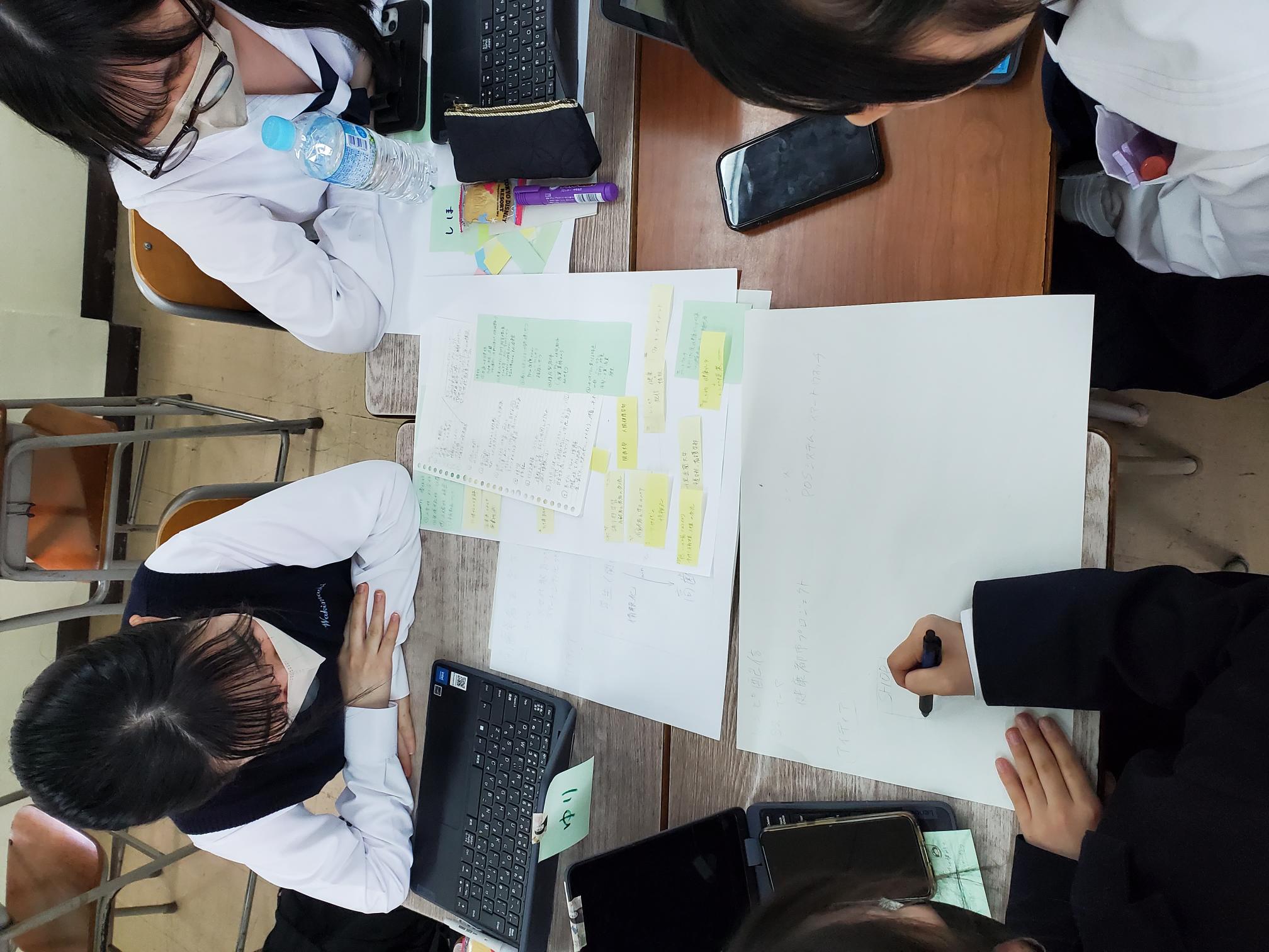 2025年5月20日 19時23分今回は探究部員に加え、有志メンバーを募り、1日で考えるワークショップを開催し、17名が参加しました。「関西大学ビジネスプラン コンペティションKUBIC(学生の力)」のテーマから選び、4~5人のグループで考えました。(i.school検定2級 坂本 淳 氏 指導)