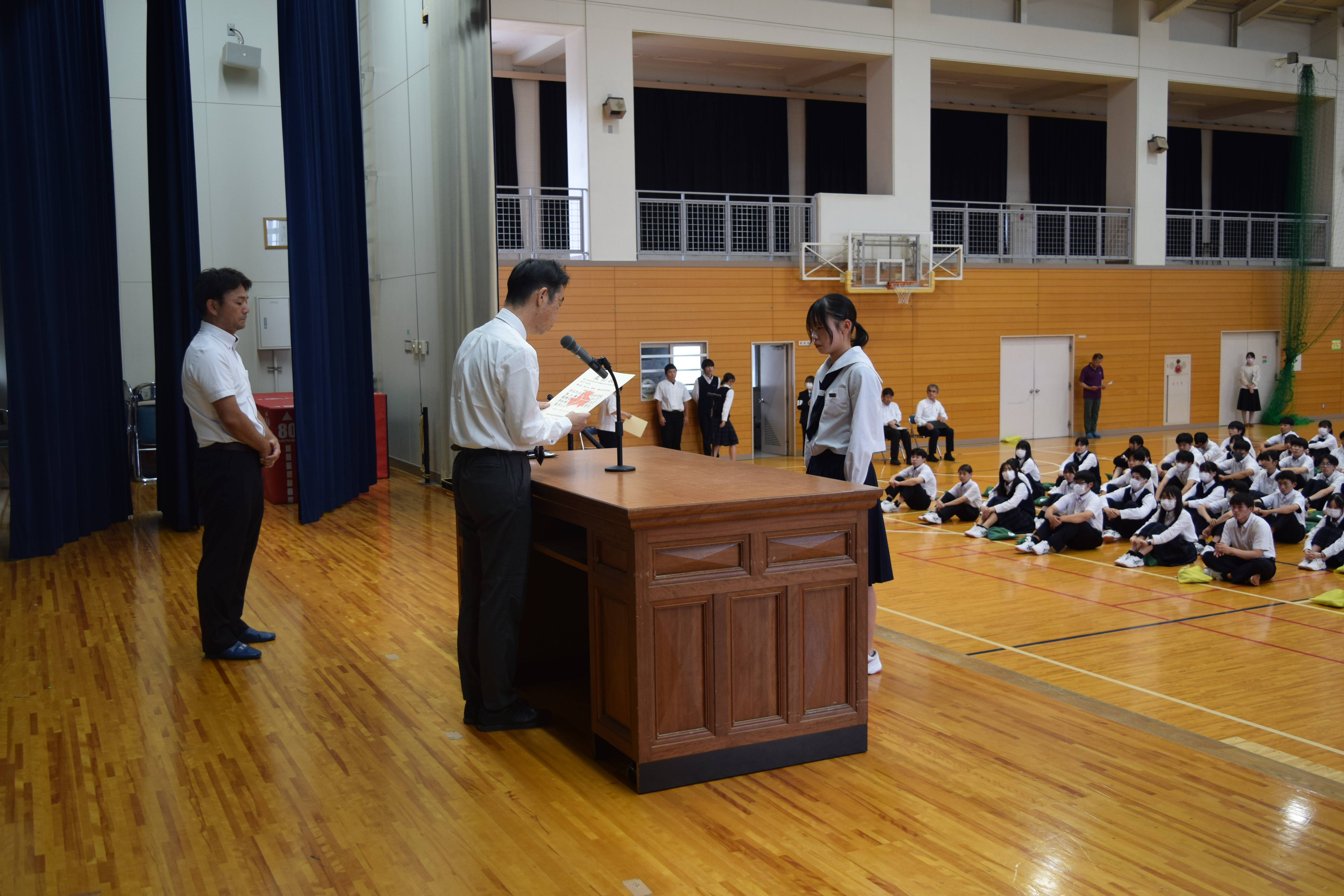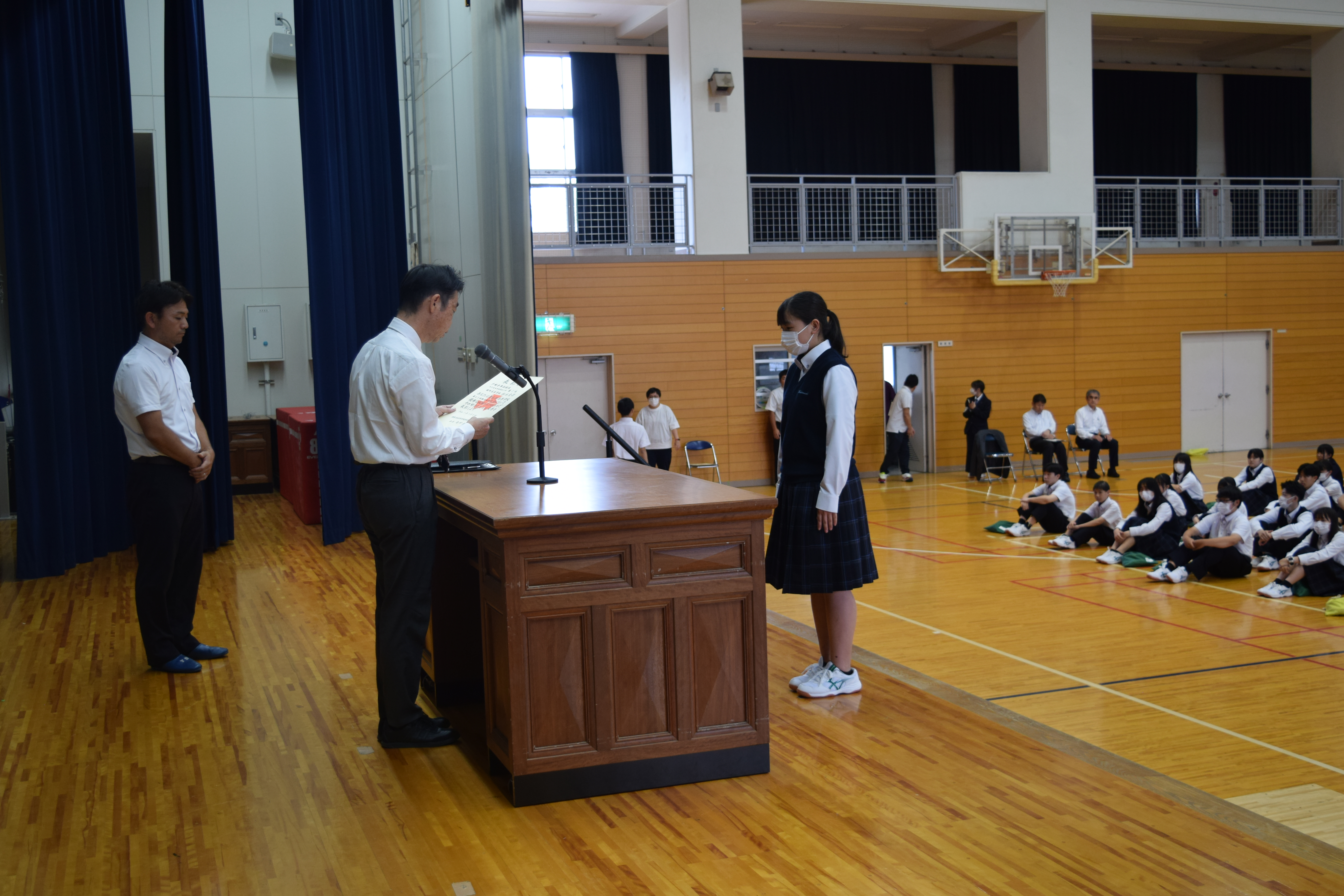 令和7年度 表彰伝達(県総体関係) 2025年6月11日 15時45分 6月11日、徳島県高等学校総合体育大会の表彰伝達が行われました。今年度もたくさんの選手が表彰を受けていました。表彰を受けた選手の皆さん、おめでとうございます。